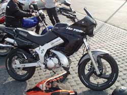 Umbauten: -CDI mit Schalter, -Krümmer auf, -Rafal Endtopf, -breiterer Lenker schwarz, -Weiße Miniblinker, -Carbon F1 Spiegel, -Carbon Tankpad, -Carboncover auf m Tankdeckel, -rote Schrauben für Tankdeckel und Lenkerbrücke, -Carbon Gabelprotektoren, -Harris Carbon Griffe, -Handprotektoren (manchmal), -Aufkleber abgemacht, -Reifenschriftzüge nachgemalt, -Racing Fußrasten vorne/hinten, -hintere Fußrastenhalter schwarz, -Spritzschutz ab, -Cockpituhr, -schwarze Sitzbank, -Alu Lochblech in n Seitenverkleidungen und am Bremssattelschutz, -LED Rücklicht mit schwarzer Lochblechverkleidung, -No Fear Schriftzug, -Wirth Federn