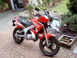 Umbauten: klarglasblinker, blaueloxierte Lenkerenden und Tankdeckelschrauben, schmalere Spiegel, selbstgemachte Carbonfolie Tankpad und aufkleber, namen auf Radschwinge, LED Beleuchtung hinterrad und unterboden, blaues Standlicht schwarzen Griffgummis, Reifenbemalung und den entfernten Luftansaugstutzen (Schnorchel) am Luftfilter .