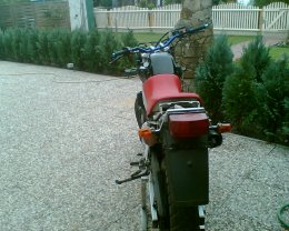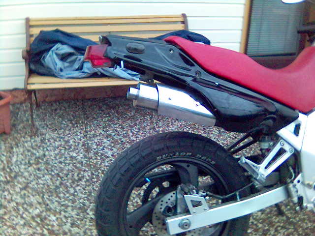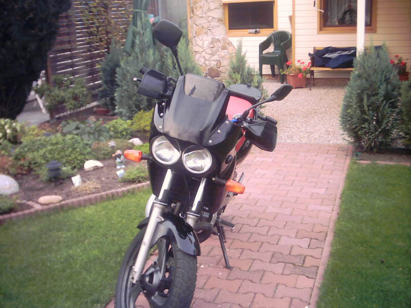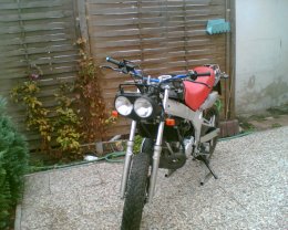 Umbauten: Neu lack, getönte Scheibe mit Namen der TDR (Natascha), Auspuffblende, Böser Blick, Polisport Handprotecktoren( nicht auf den Bildern), rote Sitzbank, Tacho umbgebaut, Seitenmackierungsleuchten, Warnblinkanlage, Krümmerdrossel entfernt, Blinker ans Nummernschild gesetzt, Streetfigtlenker, Carbonfolie, Ritzelabdeckung poliert, Rote Sitzbank(siehe foto)