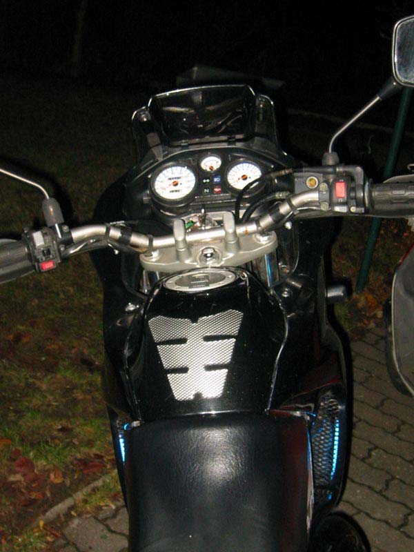 ESD-Blende, diverse Aufkleber, Tankpad, Polisport Handprotektoren, weisse
